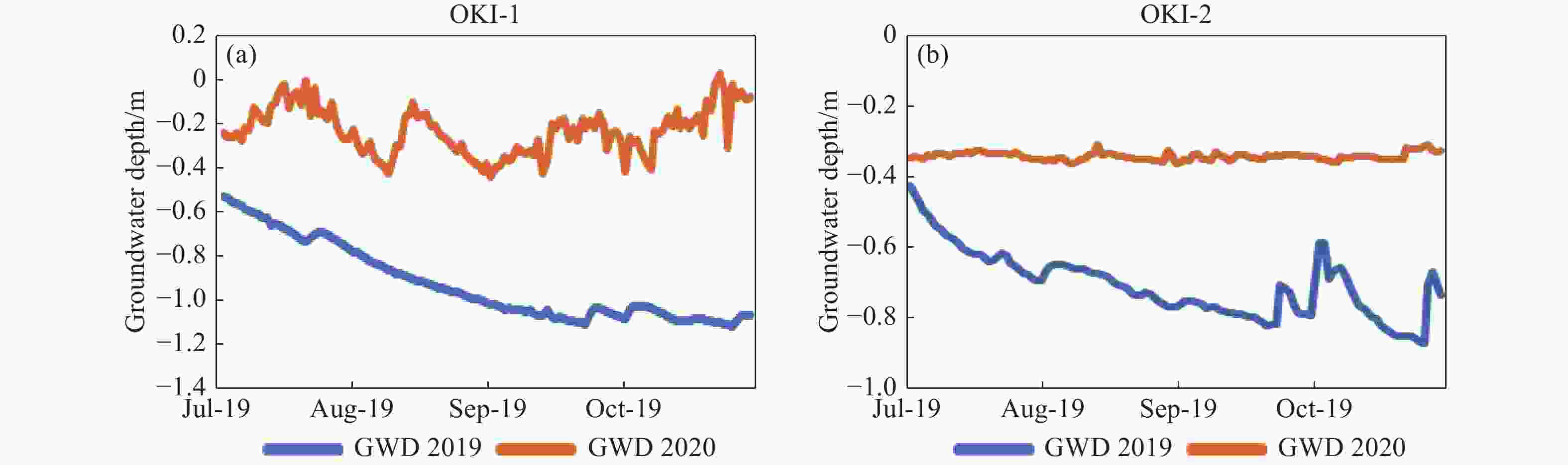 Station Year Correlation Equation of GWL (x) vs SM (y) Coefficient correlation (r) OKI-1 2019 y = 5.4561x + 9.8 0.97 2020 y = −306.92x3 − 148.2x2 + 28.622x + 46.773 0.78 OKI-2 2019 y = −394.76x3 − 725.11x2 − 400.83x − 44.387 0.92 2020 y = 2638.9x2 + 2145.2x + 460.99 0.71 -